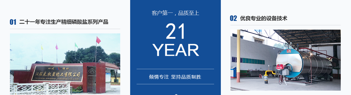 本公司位于四川省綿竹市漢旺鎮(zhèn),是自1997年成立以來(lái)至今,已發(fā)展成為四川生產(chǎn)經(jīng)驗(yàn)豐富的精細(xì)磷酸鹽系列產(chǎn)品專業(yè)生產(chǎn)廠家,地理位置優(yōu)越,毗鄰四川新市和拱星工業(yè)園區(qū),與什邡磷化工生產(chǎn)基地交相輝映。主要生產(chǎn)產(chǎn)品有:磷酸二氫鉀、酸式磷酸鉀、磷酸氫二鉀、磷酸脲、磷酸二氫鈉、磷酸氫二鈉、磷酸三鈉、磷酸二氫銨、磷酸氫二銨等系列磷酸鹽產(chǎn)品。